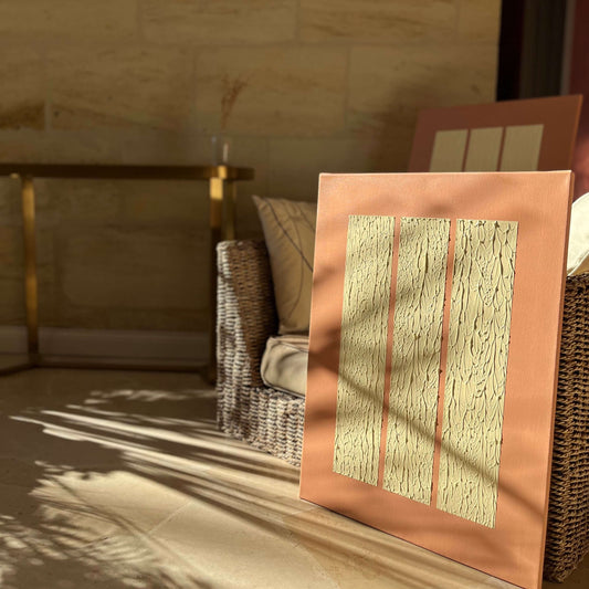 "LES ROCHES BEIGES" - Tableau texturé, édition limitée en lin naturel