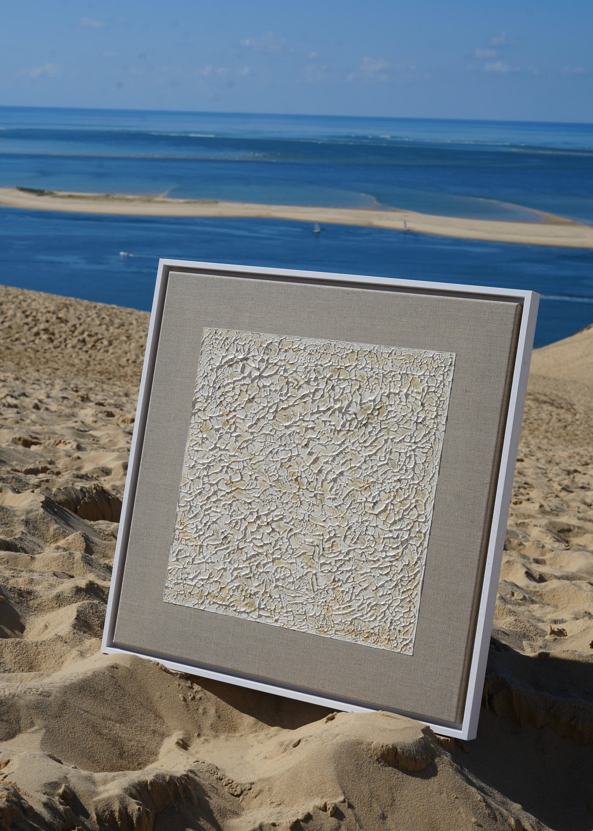 "LES ROCHES BEIGES" - Tableau texturé, édition limitée en lin naturel